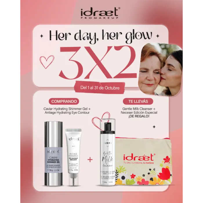 Comprando Caviar Hydrating Shimmer Gel + Antiage Eye Contour TONO HC10 ENHANCE, te llev谩s de regalo el Gentle Milk Cleanser + neceser edici贸n especial.