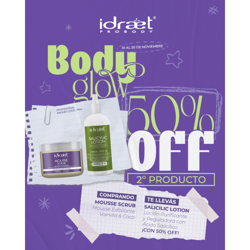 PROMO 004 – 2DO 50% OFF: COMPRANDO MOUSSE SCRUB = 50% OFF EN SALICYLIC LOTION